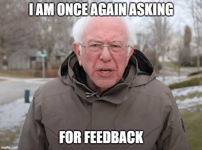 There’s more to say, but I have rambled on for too long already. Feel free to give me feedback in the comments below – I’ll try receive it how I describe above.