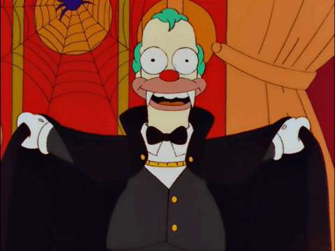 I was reminded of the scene on the right where Krusty the Clown reads his slightly poorly cut cue cards to a live audience when I was sighing about something or other related to work. ‘Tonight I’m going to SUUUCK!’ when something wasn’t going quite the way I wanted it to. Around this time I was also hanging around the virtual workplace longer, operating with the false assumption that if I just grind a bit more today, tomorrow there’ll be less work to do. Ha.