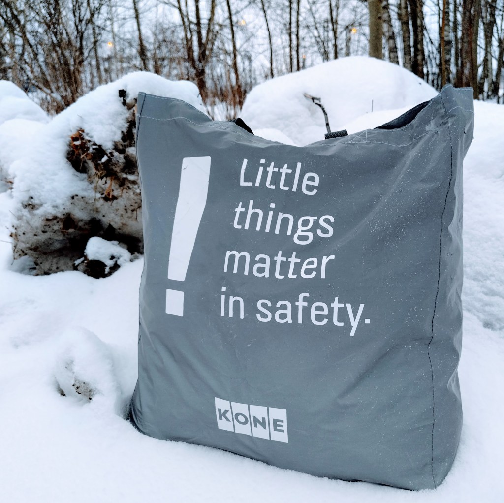 So, I try to shine some light in the dark. I use a bag I got as a farewell gift from my previous employer KONE. Its surface is fully reflecting and I use it as my gym bag – really the perfect choice when dragging myself home in the slippery darkness after an exhausting session. ‘Little things matter in safety’ is printed on the bag, and this is something that KONE sells, as I learned while working there. The industry KONE operates in is not safety (is there such an industry?) but industrial machinery manufacturing – elevators, escalators, automatic doors, and additional equipment for added efficiency and service -, but instead of offering only a box that goes up and down when you push a button, you are offered the certainty that the box will do exactly what you want, stop on the right floor, and never ever cause any danger.